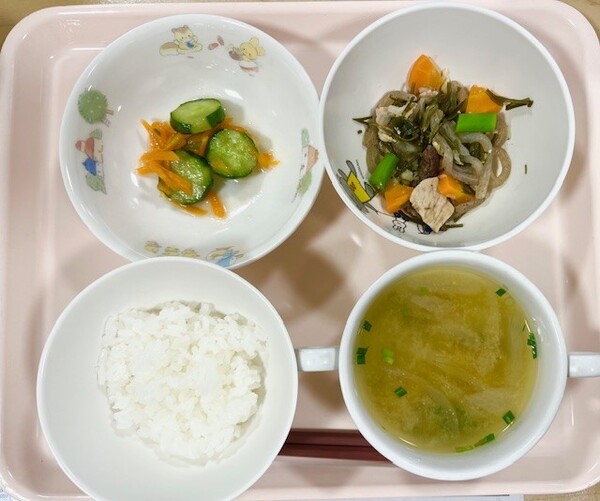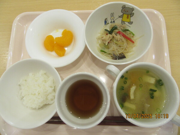 豚肉と春雨の炒め物は、春雨の長さが0歳児さんは2p、1歳児さんからは4pほどの長さで食べやすくしてありました。