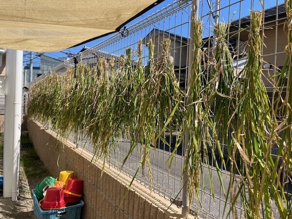 6月に苗づくりをしていたもち米が、ぐんぐん成長して収穫の時期になりました!