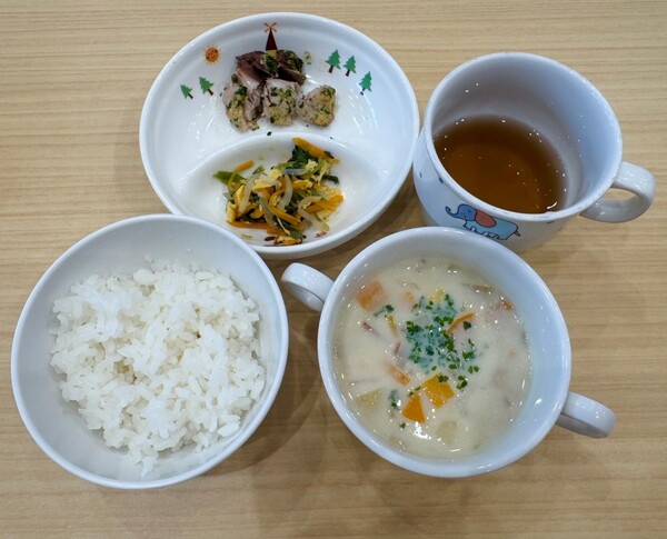 ほうれん草ともやしの和え物では鉄分も摂れて、豆乳スープではタンパク質とカルシウムが摂れて、栄養満点の給食でした!