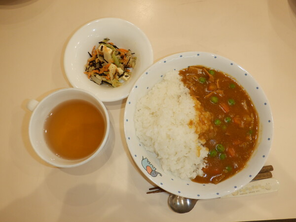 ごはん・ポークカレー・ひじきとチーズのサラダ