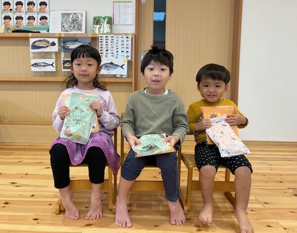 11月生まれは4人いますが、今日はお一人お休みでしたので、3人のお友だちのお祝いをしました♪