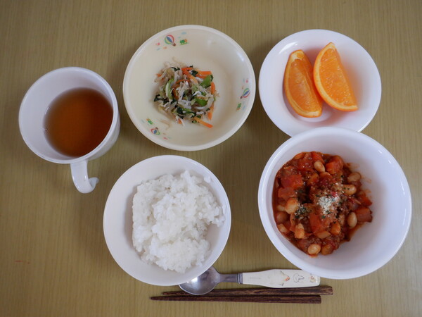 献立表では「つわぶきの炒め煮」だったのですが、つわぶきの入荷ができず残念…(*_*)代わりに人参を使った炒め煮でしたが、これも食べやすかったようで、野菜が苦手な子もパクパク食べていました!